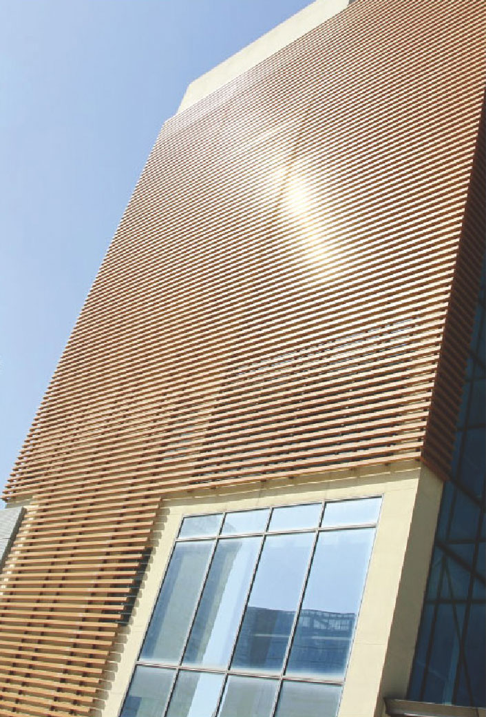 木紋鋁單板是通過噴涂以及熱轉(zhuǎn)印或輥涂的工藝。在鋁板表面涂敷木紋裝飾涂層。鋁板表面的木紋表面具有清晰明了的纖細(xì)或粗狂的仿真木紋紋理,具有色彩豐富、自然逼真的特點(diǎn)。木紋紋理不僅能在平面鋁板上應(yīng)用,更能在異型鋁板表面上應(yīng)用,從而提高了產(chǎn)品外觀裝飾效果及使用價(jià)值,美化了建筑空間環(huán)境,未涉及師提供了更為廣闊的構(gòu)想空間,以創(chuàng)造出更獨(dú)特美觀的作品。